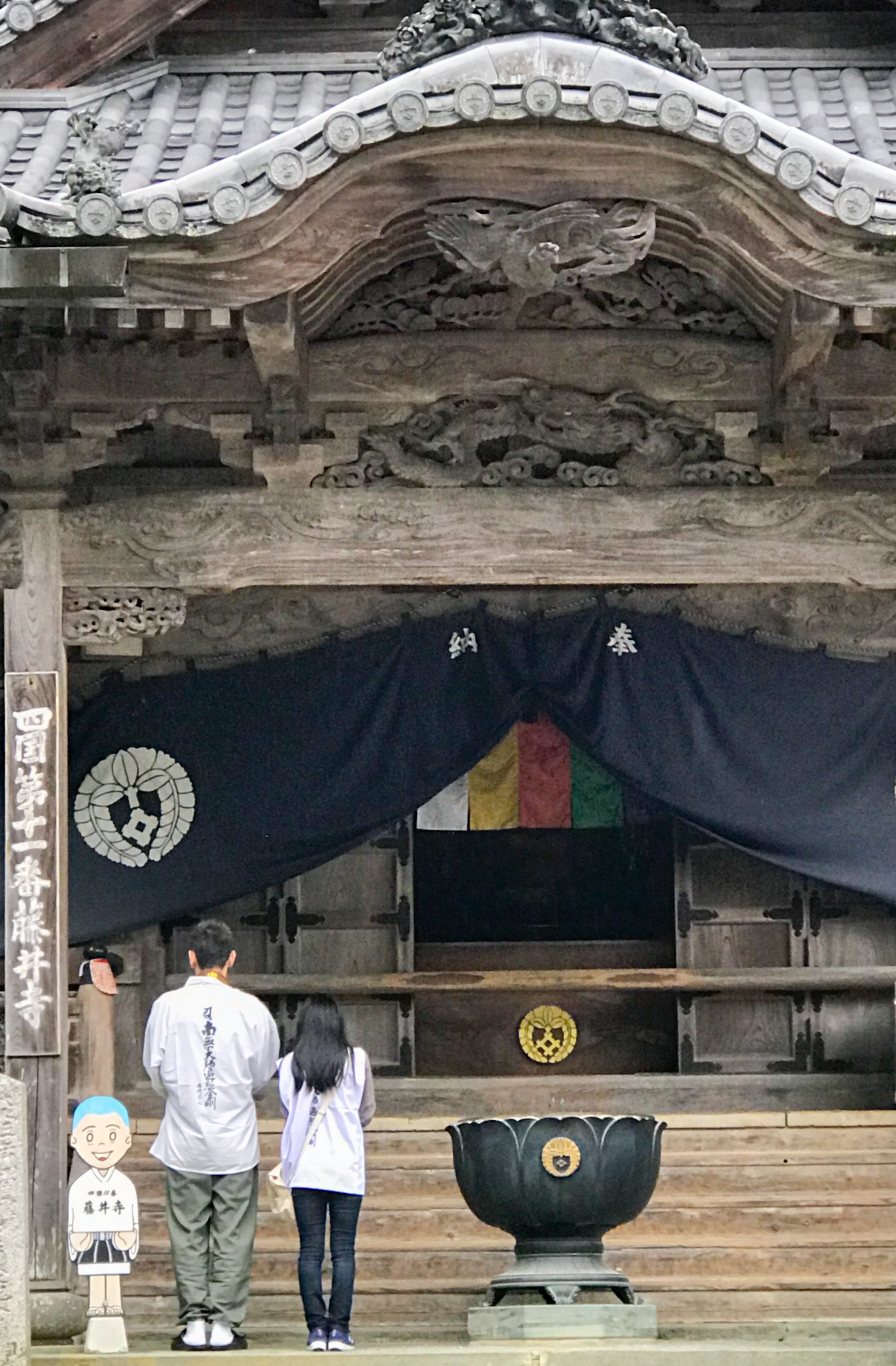 Buddhists stop and pray and chant sutras at each temple, which takes around 20 minutes. I normally just take off my pack and rest.