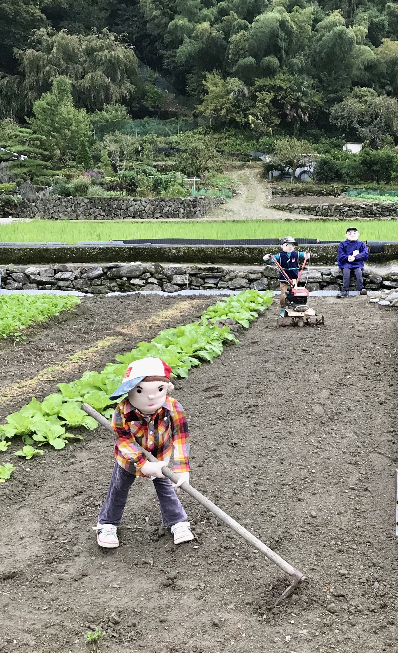 I passed through one small village where elderly residents have made 30 or so life-sized stuffed dolls and placed them around the village in an attempt to make the place feel more lived-in. Dolls sit on the porch, chat in groups on the side of the street, and work in fields. It was sad, inspiring, and creepy all at the same time.