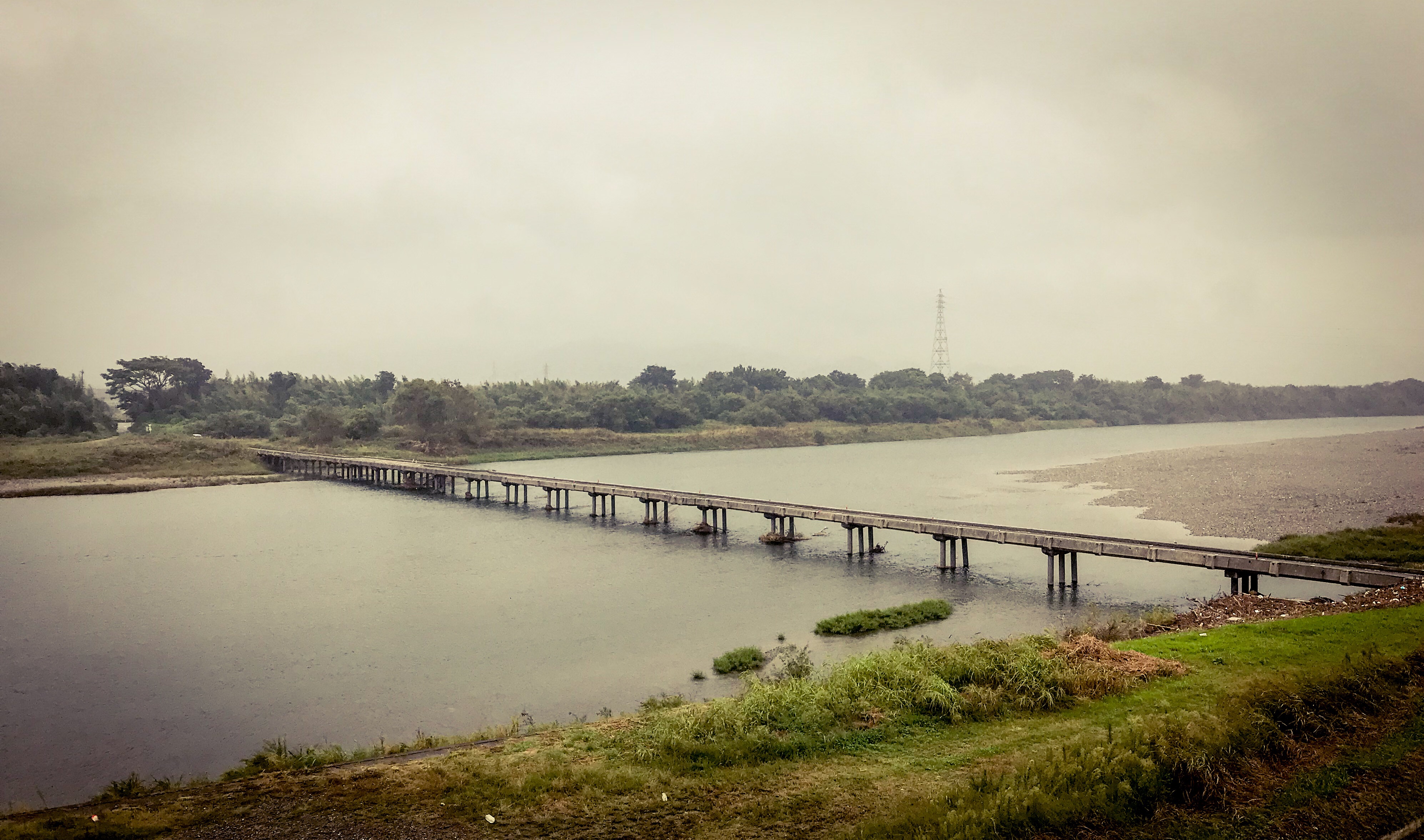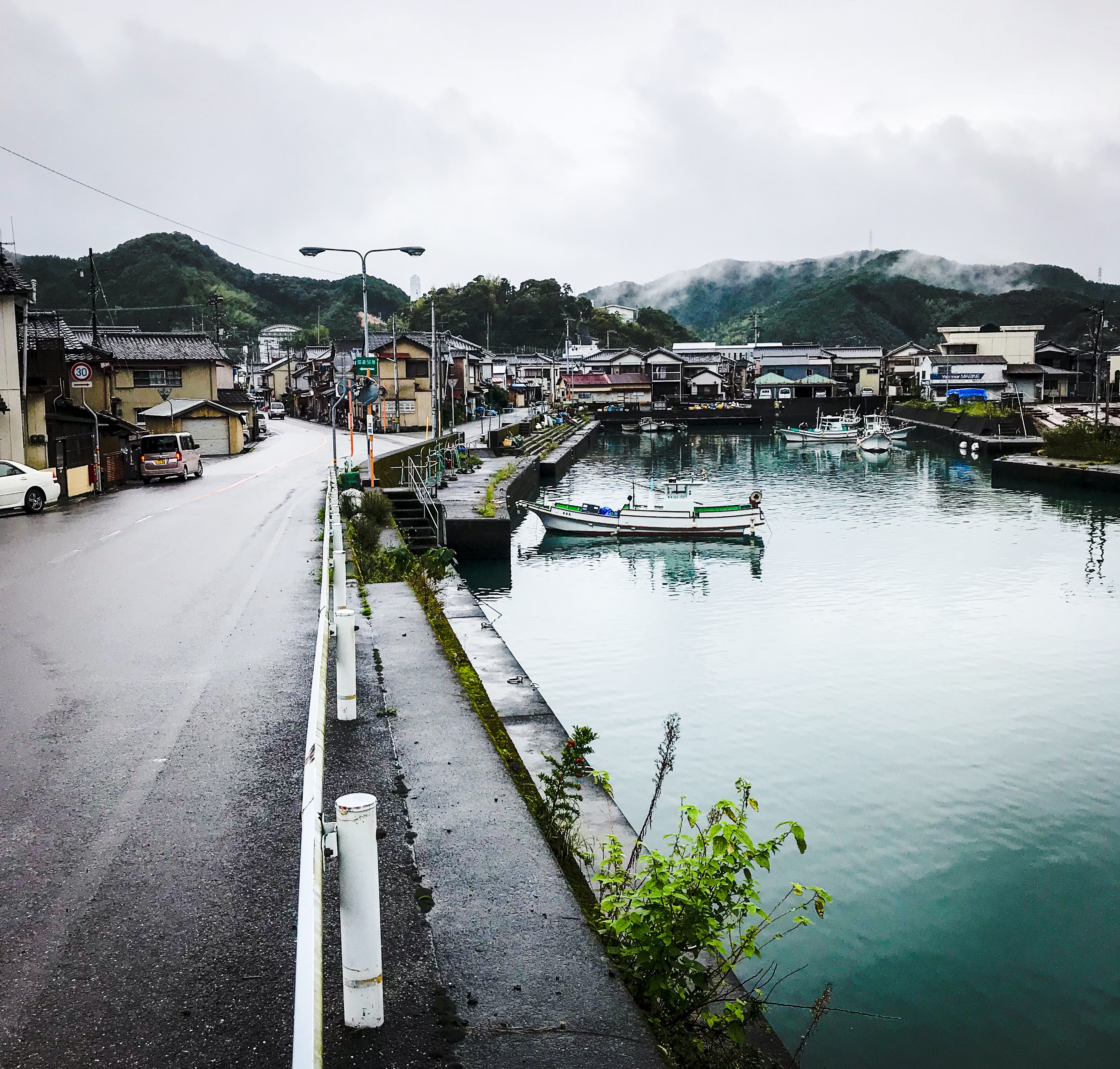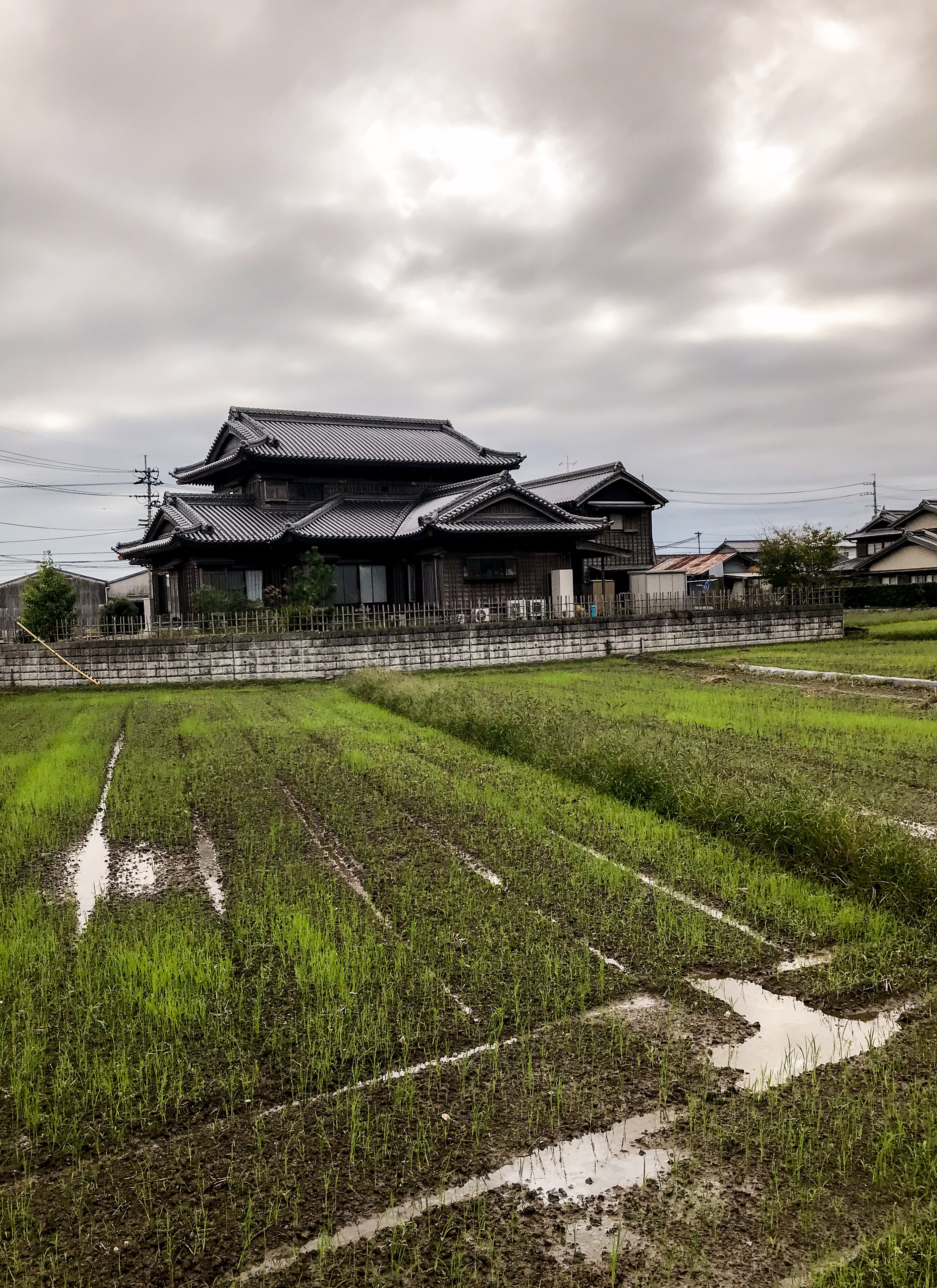 It rained essentially everyday during the last week, including one day during a typhoon when the rain was heavy non-stop the entire day. Everything was wet through and I had to dodge puddles and torrents of water rushing across the roads. I’d intended to take a small ferry across a river estuary but it was suspended due to rain and high water so I had to take a longer route across a series of flat farm lands that were nearly submerged.