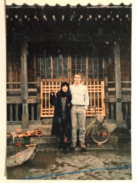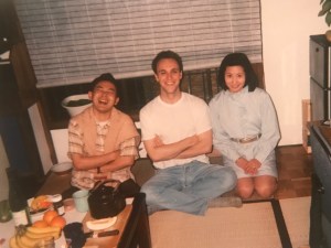 I had this couple over for dinner to my little apartment when I lived in Shimo-Kitazwa in Shibuya Ward in the western part of the city. I lived in what’s known as a geshiku (下宿), a traditional boarding house for men (usually students) where each occupant has a very small room with tatami straw matt floors and eats meals in a common dining area downstairs. It no longer served as a real geshiku, and our landlady didn’t serve meals but it was still men only and still offered small rooms with tatami floors. There were two squat-style toilets and a large sink in the hallway but no shower or bath so we went daily to the nearby public bath to get clean.