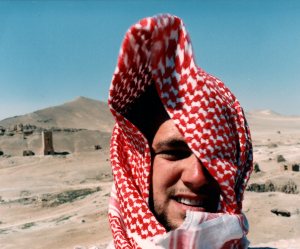 This was an early example of a selfie, i.e. holding my camera as far from my face as possible and hoping the thing took a picture when I pressed the shutter. It worked, and here I am captured in the central Syrian desert oasis town of Palmyra. I bought the keffiyeh (Arabian headdress) in the market in Damascus and it proved to be very practical in the heat and wind of the desert.
