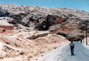Tadmur is a small frontier administrative town located in an oasis in the middle of the Syrian Desert a little over 200 kilometres (125 miles) northeast of Damascus. Its claim to fame are the Roman ruins of Palmyra, a UNESCO World Heritage Site just southwest of town. The city became the Roman province of Syria in 273 AD and there are still a senate house, baths, an agora, temples and walls of the city to explore. There was a cost to enter the site and even though I don’t remember how much it was (I didn’t write it in my journal) it was extremely expensive for me at the time and I didn’t enter, so I have no photographs. It’s easy to find lots of information and pictures online though as it’s an important historical site. I spent several days in the simple but pleasant Tadmur, wandering around in the desert trying to stay cool. It reached 50 °C one day.