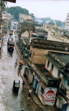 Hubli is one in a long string of ordinary, workaday medium size towns in the state of Karnataka. It was then and is now still mostly off the tourist trail which makes it interesting and worthwhile to visit. I remember people there being extremely friendly but also very intrusive (in a nice way), approaching me to interact and stare while I ate my meals or walked down the road. There are some interesting though low key sites in the state, and the food is very good. Most of the towns at the time were pretty grimy, particularly in the rain like in this photo above. Note how few vehicles there are on the road.