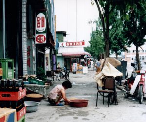 I spent a few weeks in Korea in the summer of 1987. I remember it being stiflingly hot and humid. From Tokyo I hitchhiked all the way down to Shimonoseki at the bottom of the main Japanese island of Honshu and took a ferry across to Pusan. Pusan was my favorite city in South Korea. It’s set in a very hilly and green edge of the peninsula, way down at the bottom of the country. There are wonderful seafood markets and a lot of bustle. I visited Pusan again in 2001 and couldn’t find any single thing that I remember from my earlier visit, everything had changed and was much more modern.