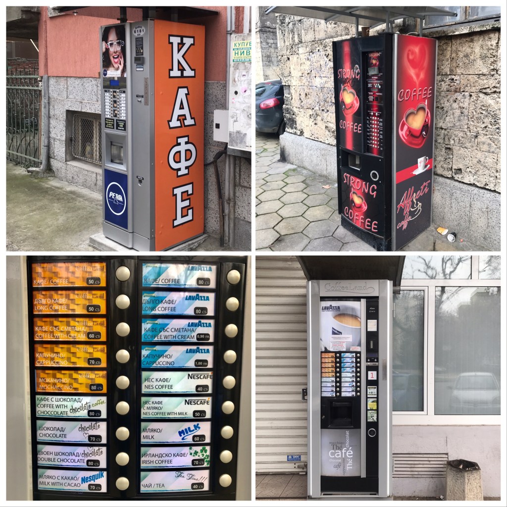 Then it would be time to sit and drink a coffee from a vending machine. There are millions of them all over the country, even in the tiniest towns, and they all dispense surprisingly good, scalding hot coffee, tea, or hot chocolate. Plovdiv and especially Sofia have a decent (and growing) hip coffee scene, but people seem to love their machine coffee, and so I learned to as well.