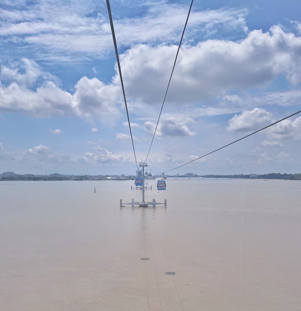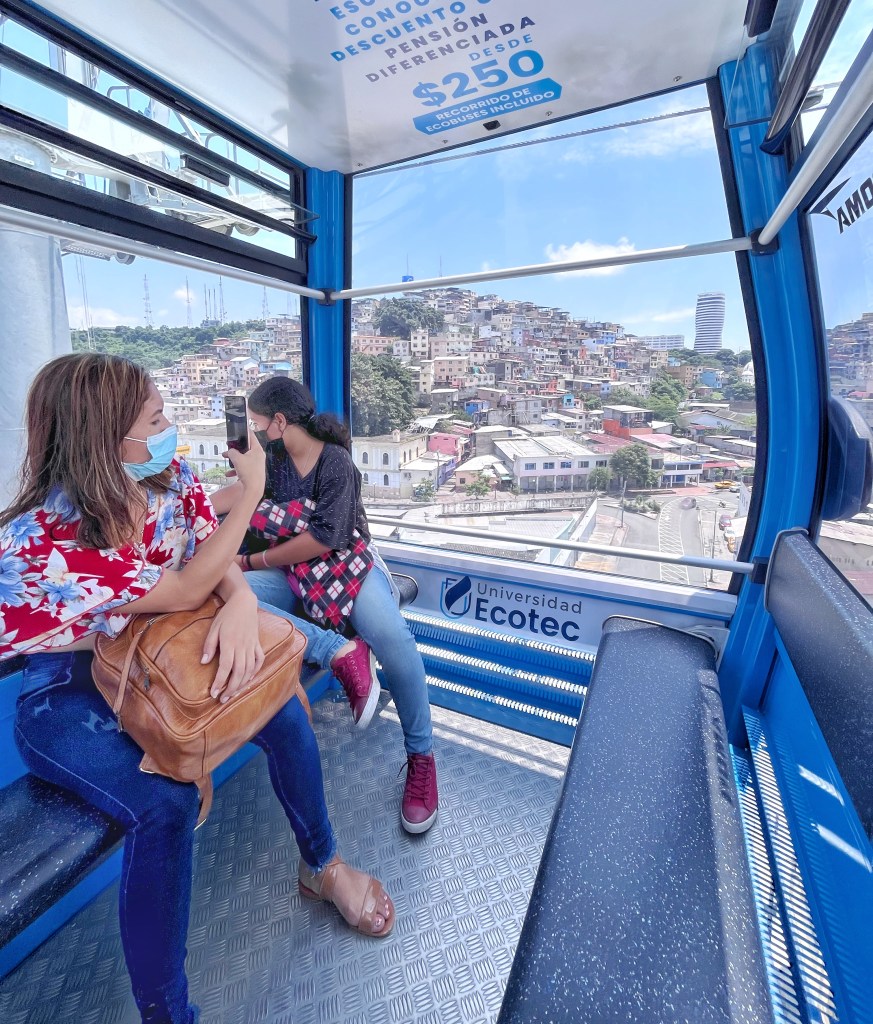 Riding the cable car across the Guayas River. The system is different from those in other Latin American countries where the cars usually go up and down the steep mountainsides rather than across flat rivers.