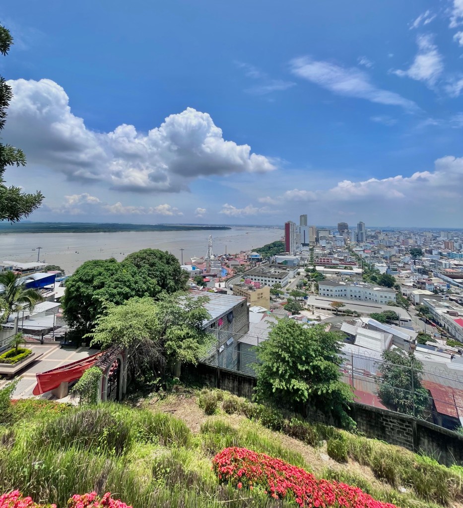 Central Guayaquil from atop the Santa Ana hill. You can see the wide Guayas River to the left.