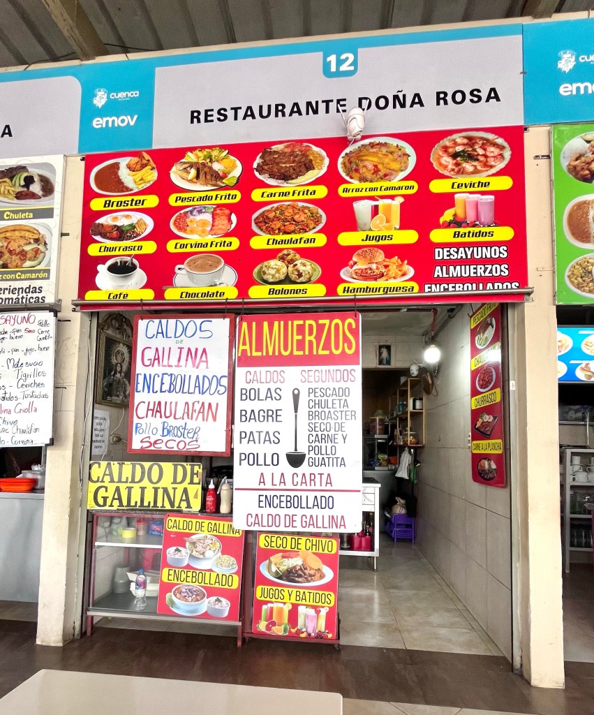 Chow time! Lunch at a food stall in the Cuenca market.