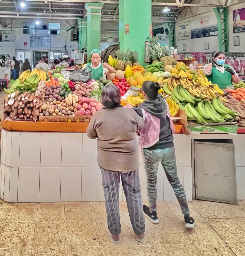 Fruit and veg shopping in the Loja market.
