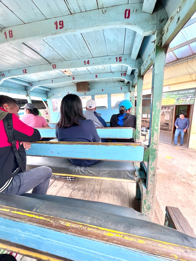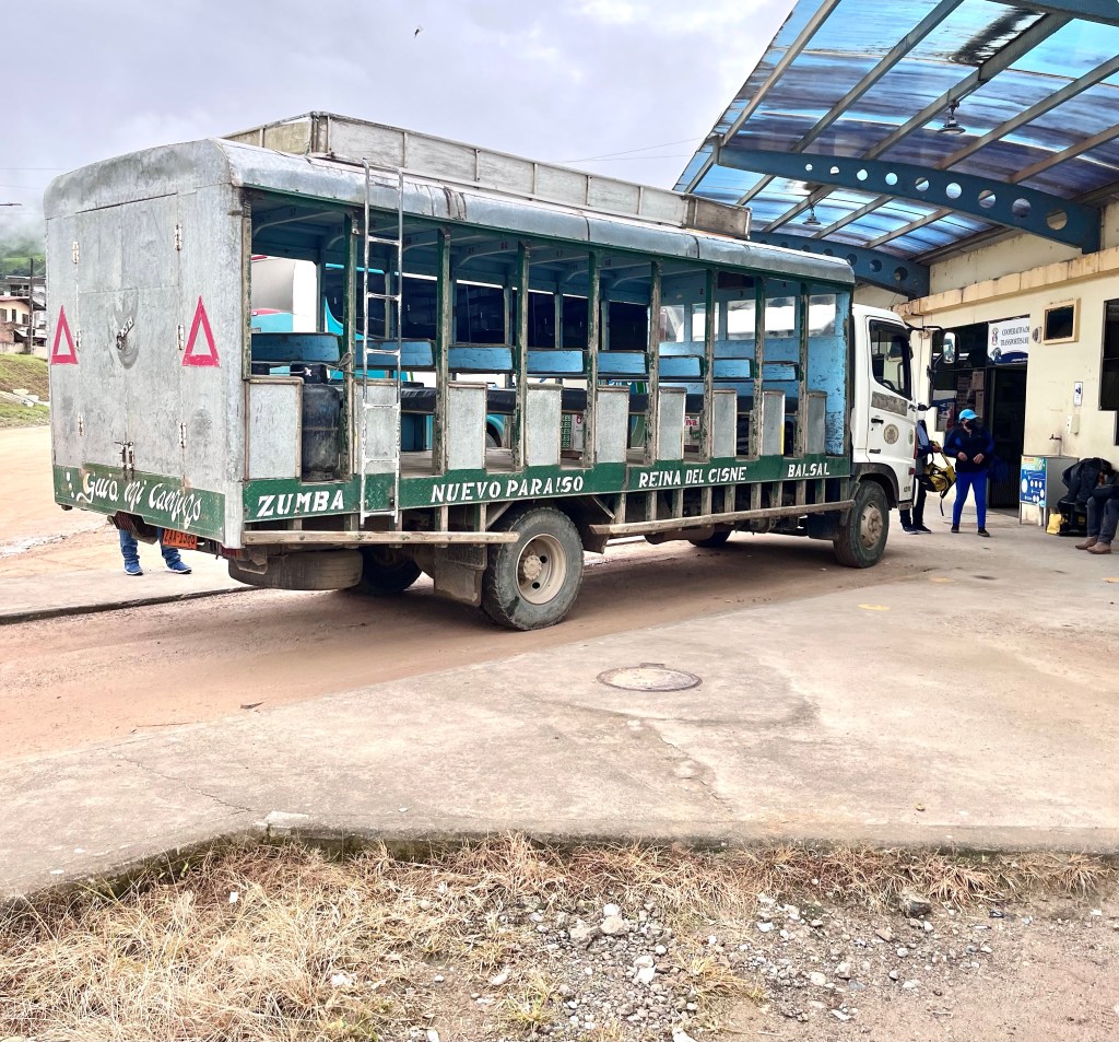 I asked the driver why rancheros are open sided, thinking it might have something to do with the terrain, or the mechanics, but he told me it was simply cheaper putting in wooden bench seats than an actual bus body. Fair enough. It was a fantastic trip, though quite cool in the early morning air when we got going. It took about 90 minutes to the border where I walked across into Peru after a wonderful 10 days in Ecuador (see my blog post on Peru, here).