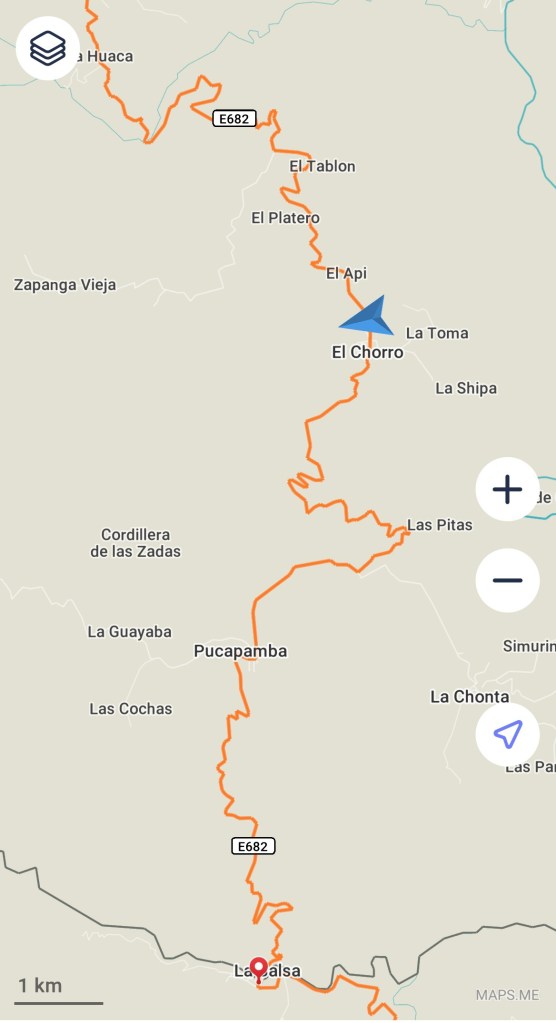 A map view of the road from Zumba to the border at La Balza. There’s not much that’s flat or straight in southern Ecuador.