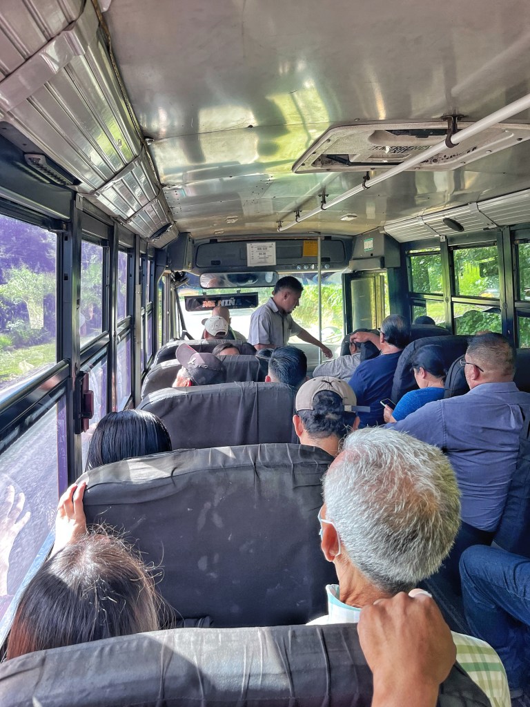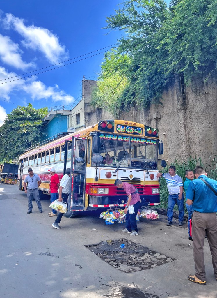 Moving around the country on public transportation is easy, but slow. It’s a little counterintuitive, because El Salvador is so small, but the roads are twisty and curvy, and buses stop very frequently to let passengers on and off so it takes longer than you think. Another reason is that routes to almost anywhere go through San Salvador or one of the larger towns. Even if the place you want to go is 50 kilometers to the east, you have to go west back to San Salvador first and catch a bus from there that goes back in the direction you just came from.