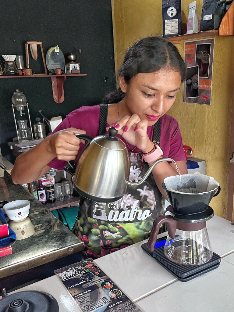 Coffee is a real treat in El Salvador. Salvadorans love coffee, and growing it, preparing it, and drinking it is close to a national pastime (often with a pupusa). I was delighted. I’d just arrived from Ecuador (see my blog post here) where good coffee can be very difficult to find. Ecuador grows and exports excellent beans, but the country doesn’t boast any sort of coffee drinking culture. You can find the odd cup here and there, particularly in the cities, but much of the time the coffee is made in a large enamel pot and sits on a stove for hours. Or it’s instant. The stuff in El Salvador was uniformly excellent, and available all hours of the day or night.