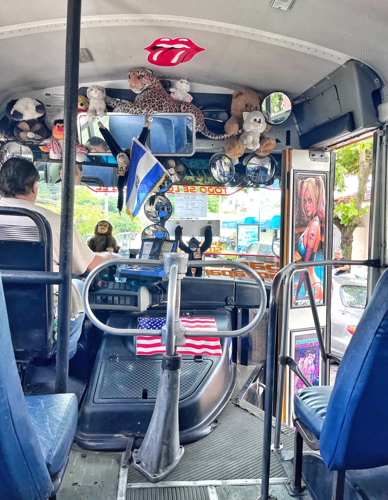 The buses themselves, though, are cool. There are a few proper large intercity buses (coaches), primarily for overnight travel or to international destinations, but the vast majority of buses are “chicken buses”, older brightly painted, former elementary school buses imported from the United States and Canada. They’re a little rickety, and not what you’d call roomy, but for the shorter journeys you take on most trips in El Salvador they’re perfectly comfortable, and big on atmosphere.